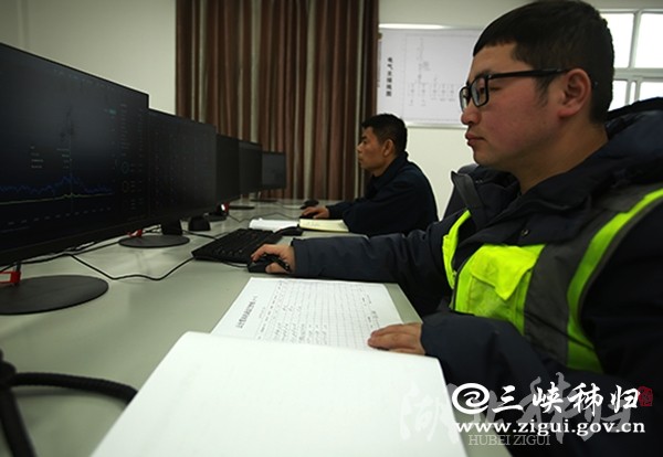 運維工人在云臺荒風電場升壓站中控室進行發電運行監控