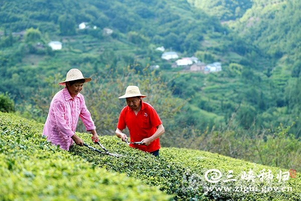 村紅驛茶葉專業(yè)合作社社員余志仙正在對(duì)夏茶進(jìn)行修剪管理
