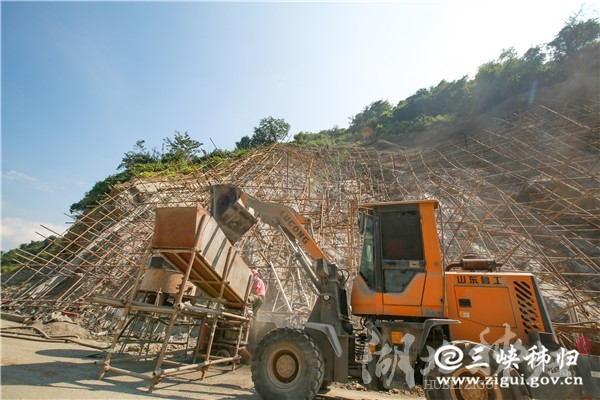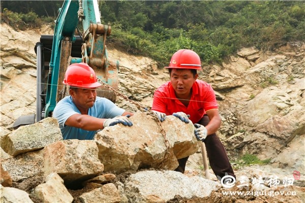 筑路工人在茅坪至芝蘭旅游公路建設工地上忙碌