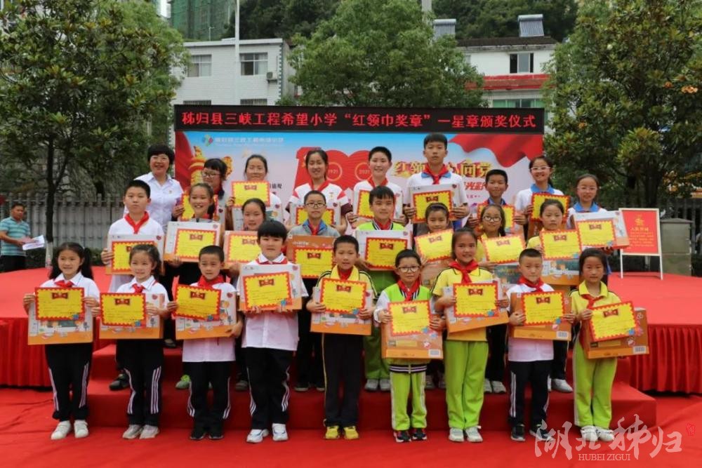 秭歸縣三峽工程希望小學舉行了隆重的“紅領巾心向黨”主題隊日活動,以此慶祝即將到來的“六一”國際兒童節。在全校師生的見證下,108名一年級學生成為光榮的少先隊員。219名少先隊員獲得了“紅領巾獎章”“一星章”榮譽,8個中隊榮獲“一星中隊”稱號。