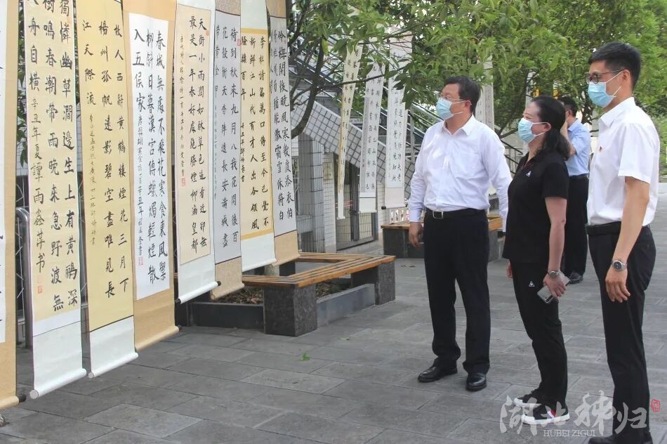 縣委書記盧輝觀看學生慶祝建黨百年優秀書法作品