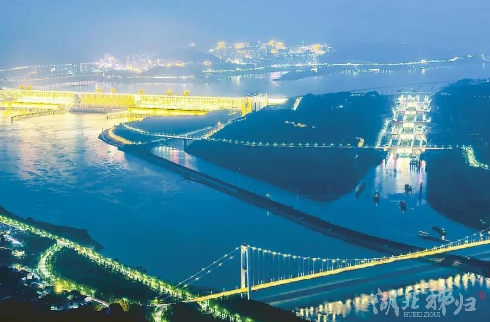 7月1日晚,船舶有序通過三峽五級船閘,三峽大壩夜色如畫。(視界網 鄭家裕 攝)