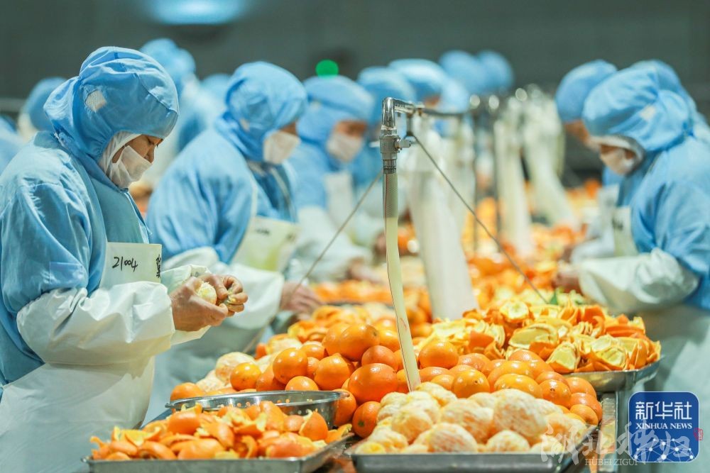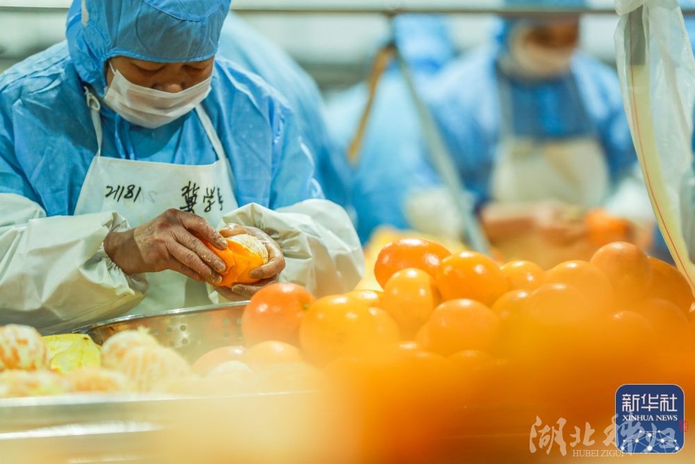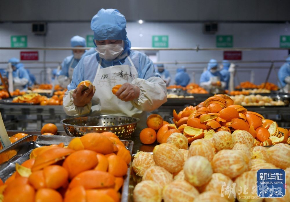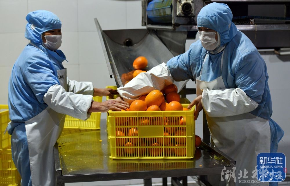 1月8日,湖北秭歸一家企業的工人在臍橙加工生產線上忙碌。新華社發(王罡攝)