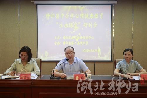 活動由秭歸縣教育科研信息中心主辦,秭歸縣第二高級中學和縣一中教聯體承辦,縣教研信息中心主任鄧忠參會,并發表了講話,全縣專兼職心理老師及城區中小學學生代表參加。整個活動分三個主要部分,第一部分“生動課堂”課例展示。本次活動展示小學、初中、高中不同學段的心理健康“生動課堂”,秭歸二中吳云老師《溝通的藝術——朋友圈里話“沖突”》,秭歸一中熊佩林老師《提升自我效能感》,實驗小學付玲莉老師《男女交往有分寸》,第一實驗中學李瑞莉老師《青春飛揚》。課例展示結束后,四位上課老師圍繞心理健康“生動課堂”評價標準進行了反思性說課,與會老師進行了激烈的思維碰撞和頭腦風暴,對心理健康“生動課堂”有了新的感悟。第二部分團體心理輔導。秭歸二中羅艷老師帶領參會老師做了《自我心關懷,賦能心力量》的團體輔導,幫助心理老師科學評估自己的壓力狀況,在活動中釋放壓力,學會自我關懷的方法,同時在團體成員的互動中,建立起心理支持系統,讓每位參與者都能感受來自團體的溫暖與支持。
