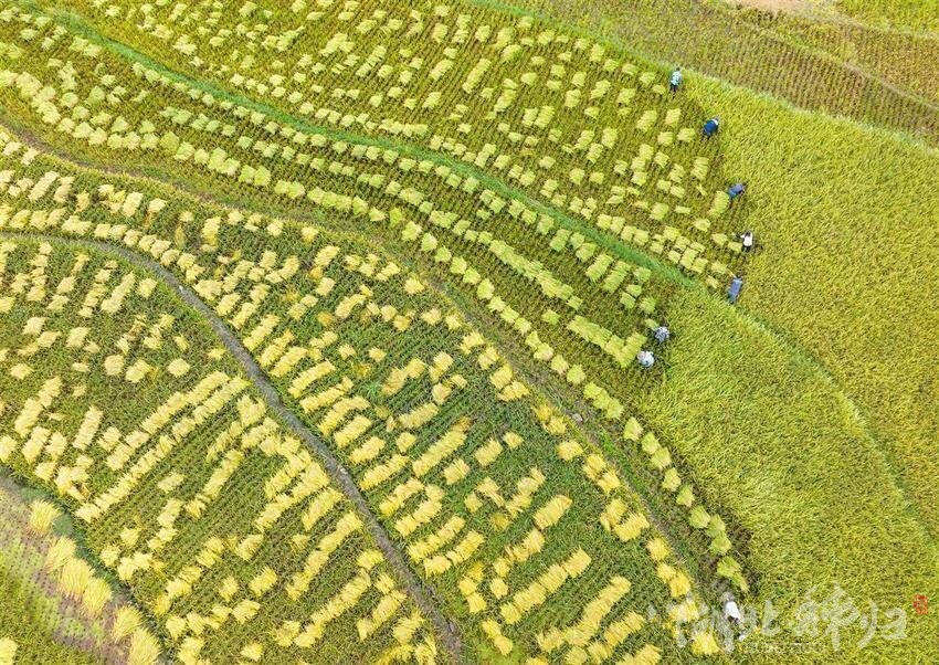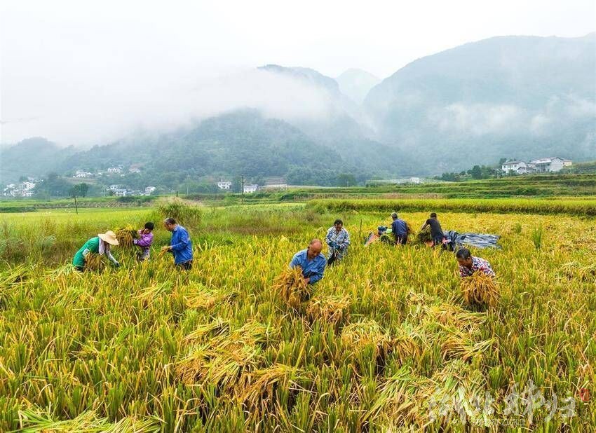 9月7日,秭歸縣九畹溪鎮(zhèn)石柱村的村民在田間收獲水稻。秋日時(shí)節(jié),秭歸縣九畹溪鎮(zhèn)石柱村種植的山泉冷水稻谷全面進(jìn)入收獲期,當(dāng)?shù)卮迕窦泳o收割、脫粒、儲(chǔ)運(yùn),田間地頭呈現(xiàn)出一派豐收的美麗畫(huà)卷。