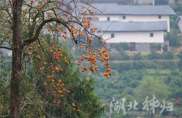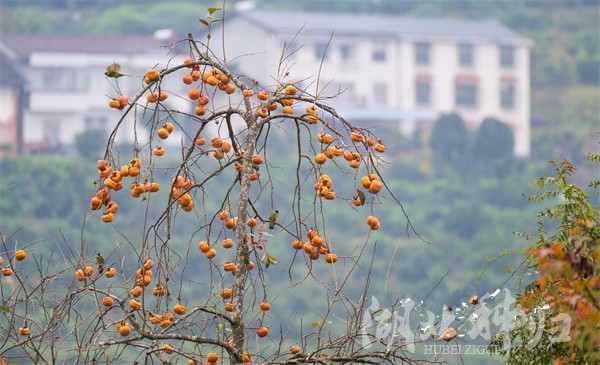 11月8日,在秭歸縣梅家河鄉拍攝的鳥兒在柿子樹上覓食撒歡。