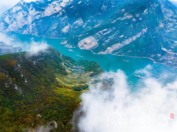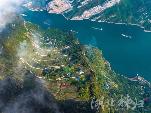 本網訊(通訊員 韓軍)初冬時節(jié),秭歸縣屈原鎮(zhèn)鏈子崖村的村道公路穿行于長江西陵峽的壯美風景之中。一江碧水,兩岸色彩斑斕。陽光灑落其間,云霧升騰,彎彎曲曲的公路與峽江上往來的船只構成一幅美麗的畫卷。