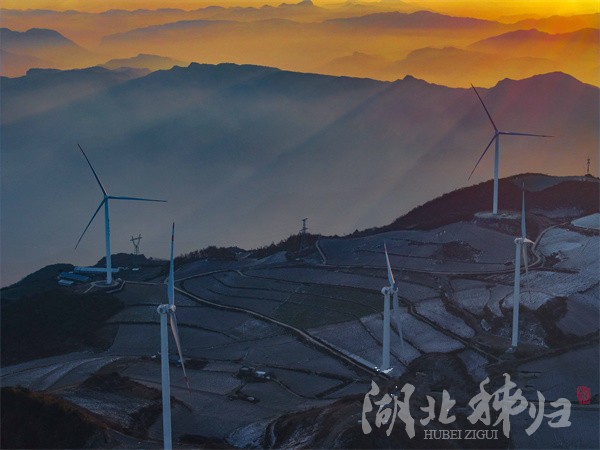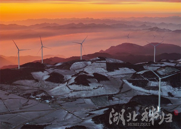 本網訊(通訊員 韓軍)大雪時節,秭歸縣云臺荒風力發電機組在運轉工作,與晨曦、瑞雪、云霧、田舍相映成景,構成一幅絢麗多姿的生態畫卷。