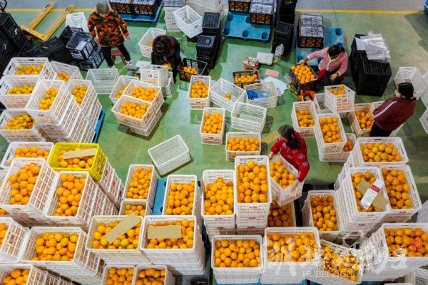 三峽秭歸訊(通訊員 吳承忠)當前,正值秭歸縣臍橙外銷旺季,當地農業外貿企業搶抓季節加緊進行臍橙采收、分揀、包裝,趕制外貿出口訂單。圖為12月19日,秭歸縣辰頤物語電商物流產業園的車間里,工人們正在對外銷鮮橙進行分揀、包裝和裝車。