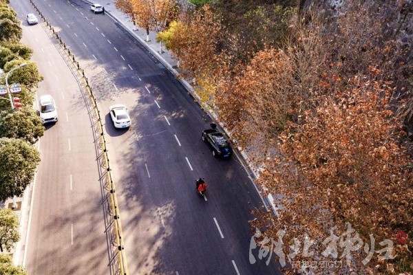 本網訊(通訊員 吳承忠)隆冬時節,秭歸縣城茅坪街道兩側的梧桐樹彩葉浸染,車行其間如在畫中,美不勝收。圖為2025年1月1日,車輛行駛在彩葉浸染的秭歸縣城茅坪鎮濱湖大道上。