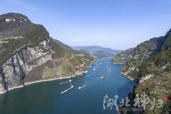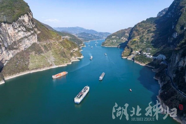 本網訊(通訊員 吳承忠)3月20日,長江三峽西陵峽江面運輸船舶往來穿梭,一派繁忙景象。圖為運輸船舶航行在長江三峽西陵峽秭歸縣牛肝馬肺峽江段。