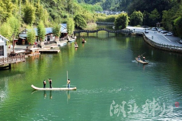 本網訊(通訊員 吳承忠)4月5日,陽光明媚,游客來到秭歸縣三峽竹海景區圣水湖上劃竹筏,樂享假期。