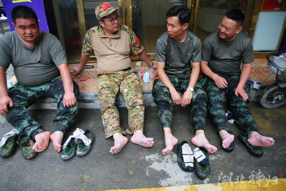 在整個(gè)清洗街道和清淤過(guò)程中,隊(duì)員們與當(dāng)?shù)馗刹咳罕姞?zhēng)先恐后搶著干,搶著最臟的活干,不怕苦不怕累不怕臭,汗流浹背,全身濕透,隊(duì)員們的手打起了黃豆大的泡,雙腳長(zhǎng)時(shí)間被水浸泡得發(fā)白發(fā)腫都無(wú)一聲怨言。