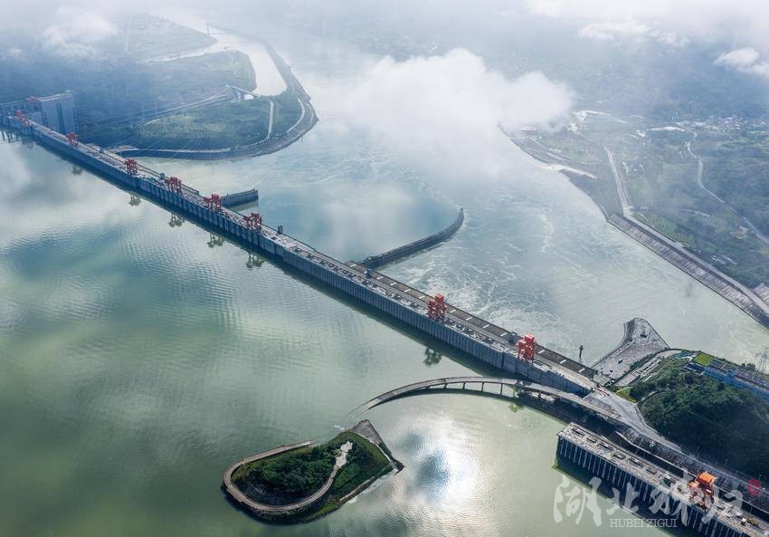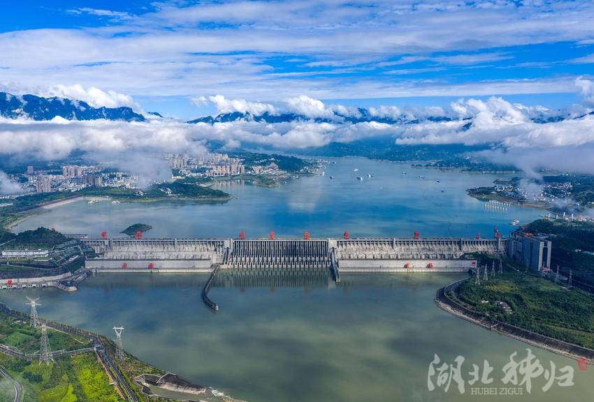 本網訊(通訊員 王罡)當日,雨過天晴的三峽大壩及附近水域上空云霧繚繞,宛如仙境。