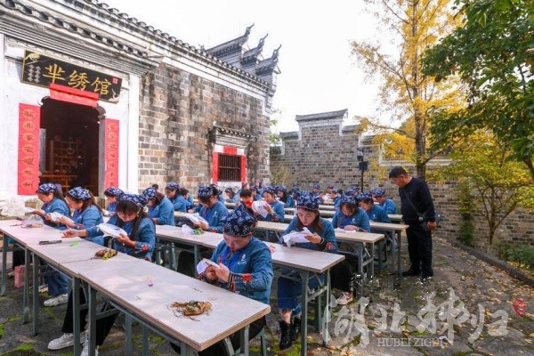 三閭刺繡起于漢代,現存針法僅挑花、刻花、斗花、掇花、平繡等十余種,技法包含繡花、彩繡、貼布繡、立體掇繡四大類,是宜昌市第六批非物質文化遺產保護名錄。當地采用“政府+公司+繡娘”模式,通過發展產業進行活態傳承,截至目前,已培訓繡娘2000余名。