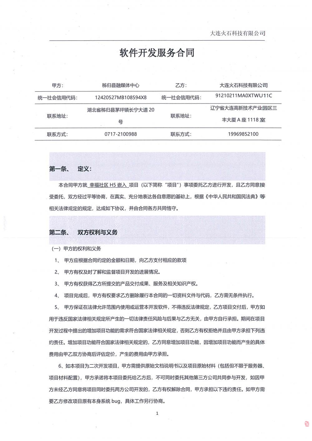 縣融媒體中心“幸福社區H5嵌入項目”技術開發合同