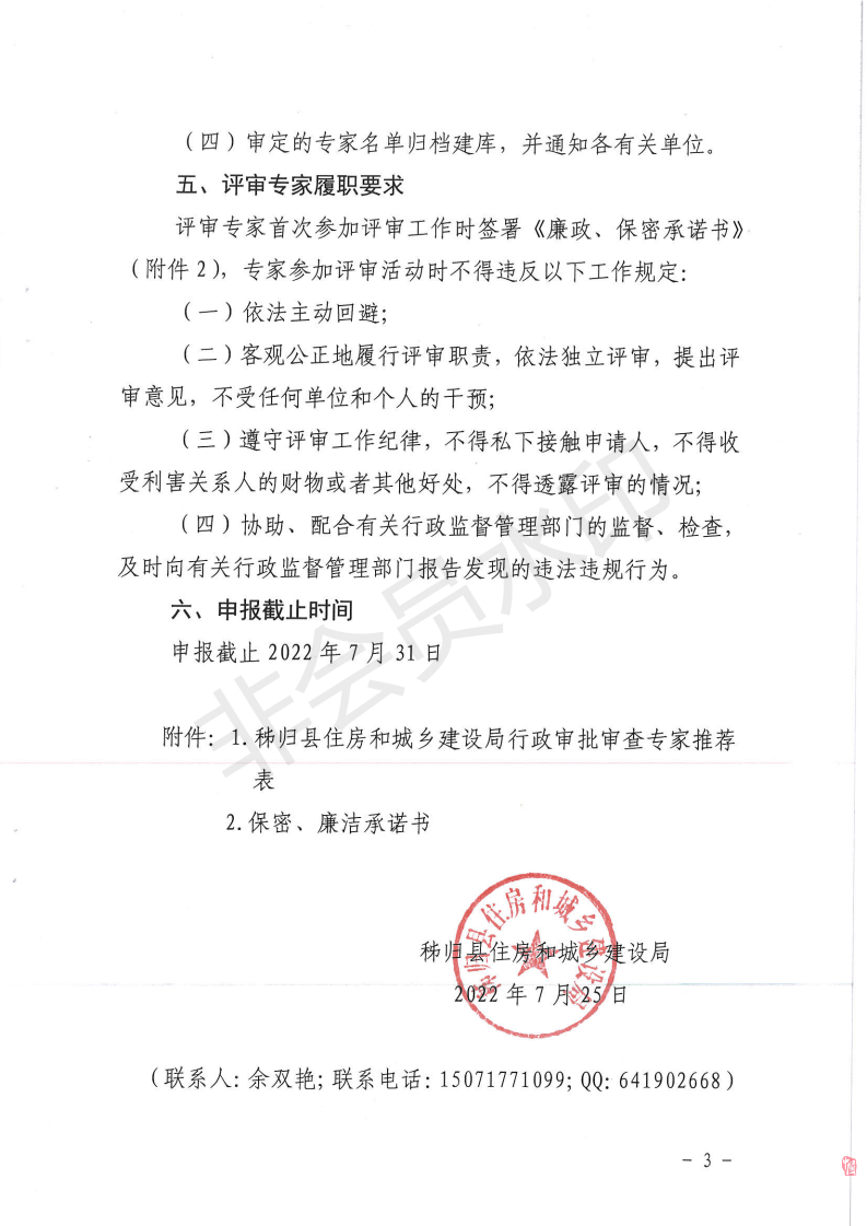 秭歸縣住建局關(guān)于推薦申報房地產(chǎn)資質(zhì)評審專家的通知