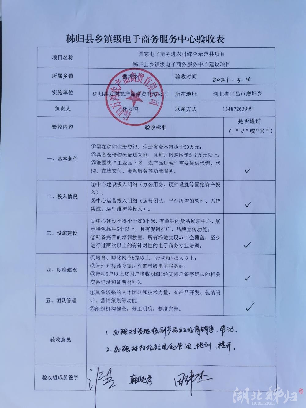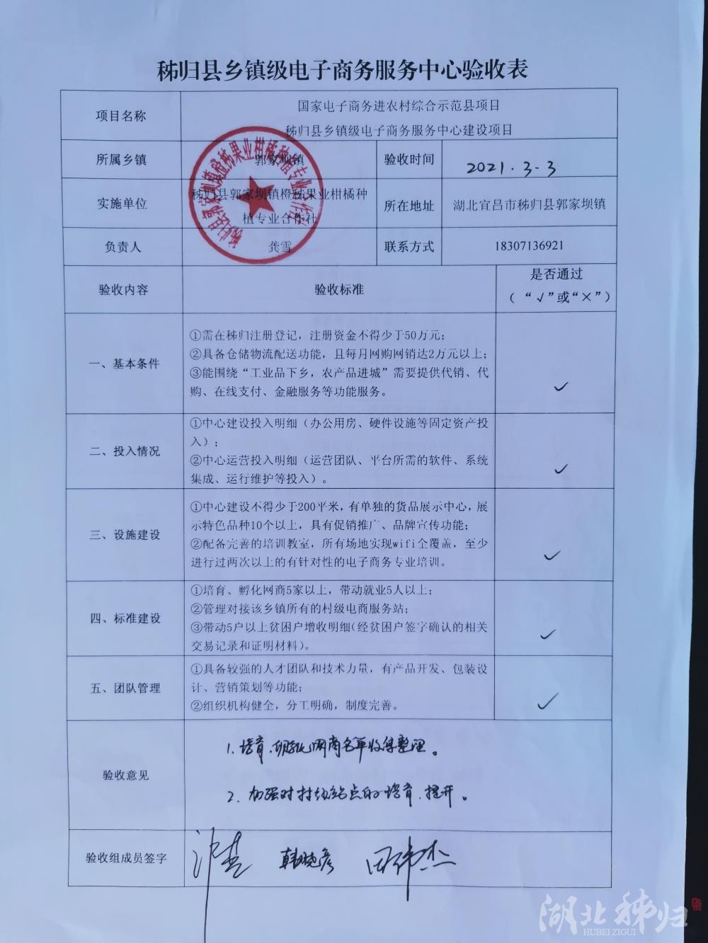 秭歸縣鄉(xiāng)鎮(zhèn)級電子商務(wù)服務(wù)中心驗(yàn)收表