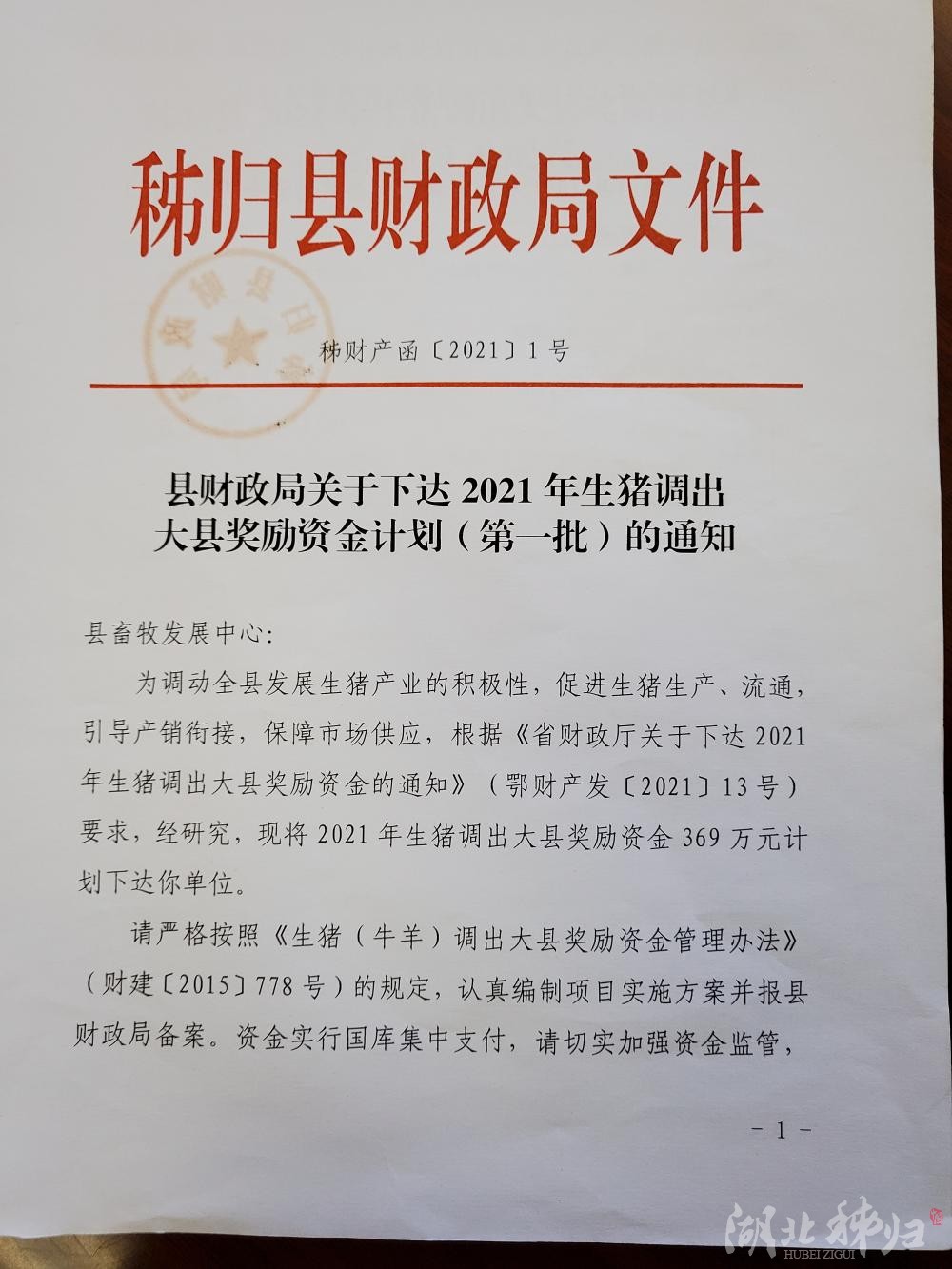 縣財政局關(guān)于下達(dá)2021年生豬調(diào)出大縣獎勵資金計劃(第一批)的通知